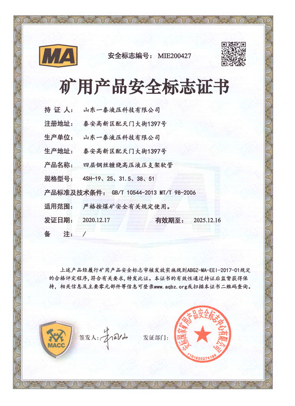 山東一泰液壓科技有限公司,坐落于山東省泰安市國家高新技術產業開發區配天門大街1397號,總占地面積6萬6千多平方米,總建筑面積4萬多平方米。公司注冊資金7500萬元,資產值3億元。公司始終專注于超高壓石油鉆探軟管、柔性節流壓井軟管、井控高壓耐火軟管總成、高端機械軟管、以及礦用液壓管體等配套產品的研發和生產。產品廣泛用于陸地和海洋石油鉆井、勘探、開采、輸送等領域;同時還為軍用系列、大型船舶系列提供了優質產品的供應保障和信任服務。